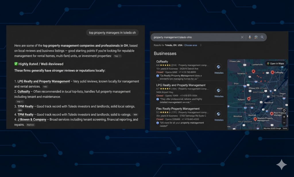 If you aren’t in the “Top 3” of the Map Pack in the surrounding radius of your office, you are essentially invisible to about 90% of your potential market. It doesn’t matter how good your “GEO” strategy is if you don’t show up when someone types “property management near me” in Google.